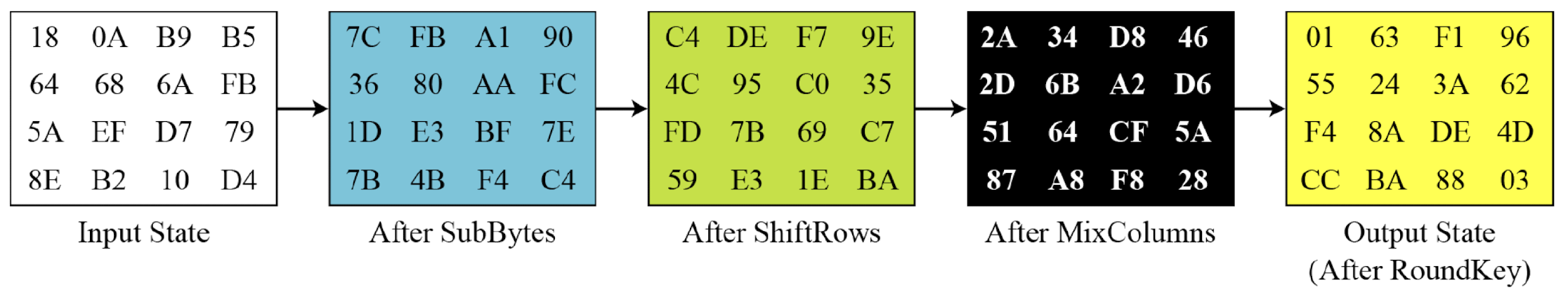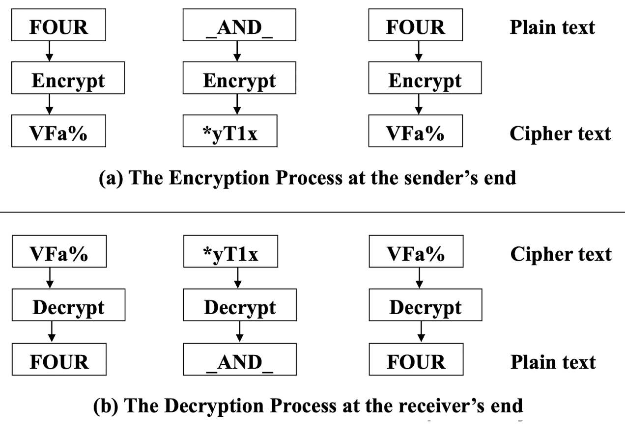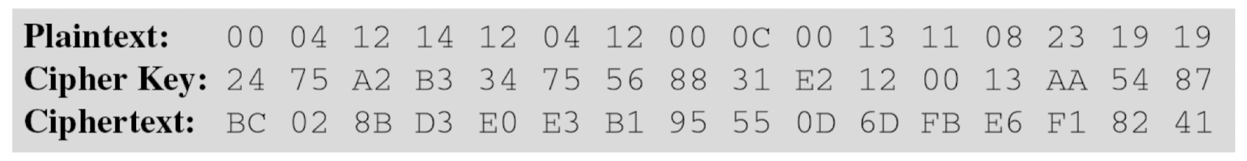 - The following shows the ciphertext block created from a plaintext block using a randomly selected cipher key