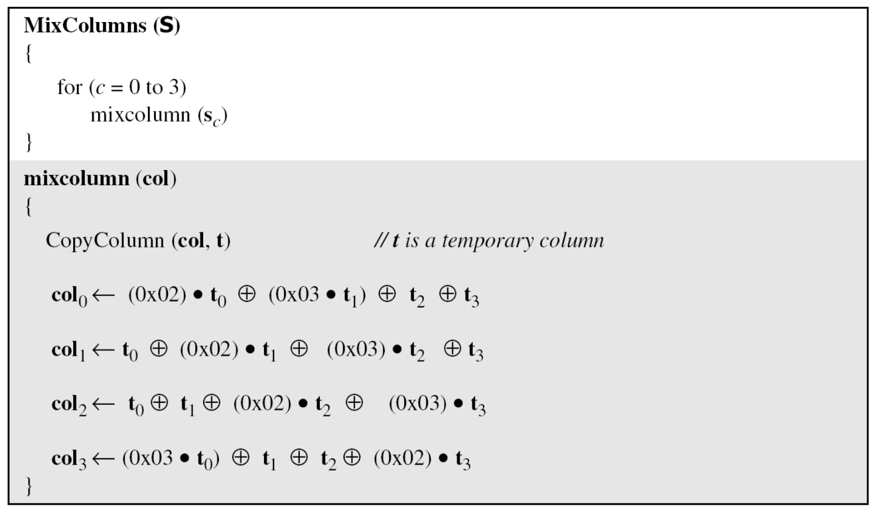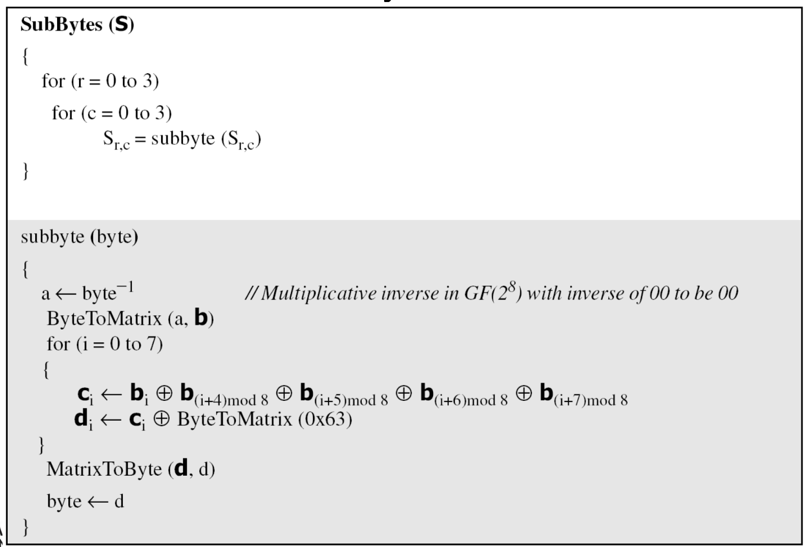 - The implementation can use table lookup process or routines that use a welldefined algebraic structure.