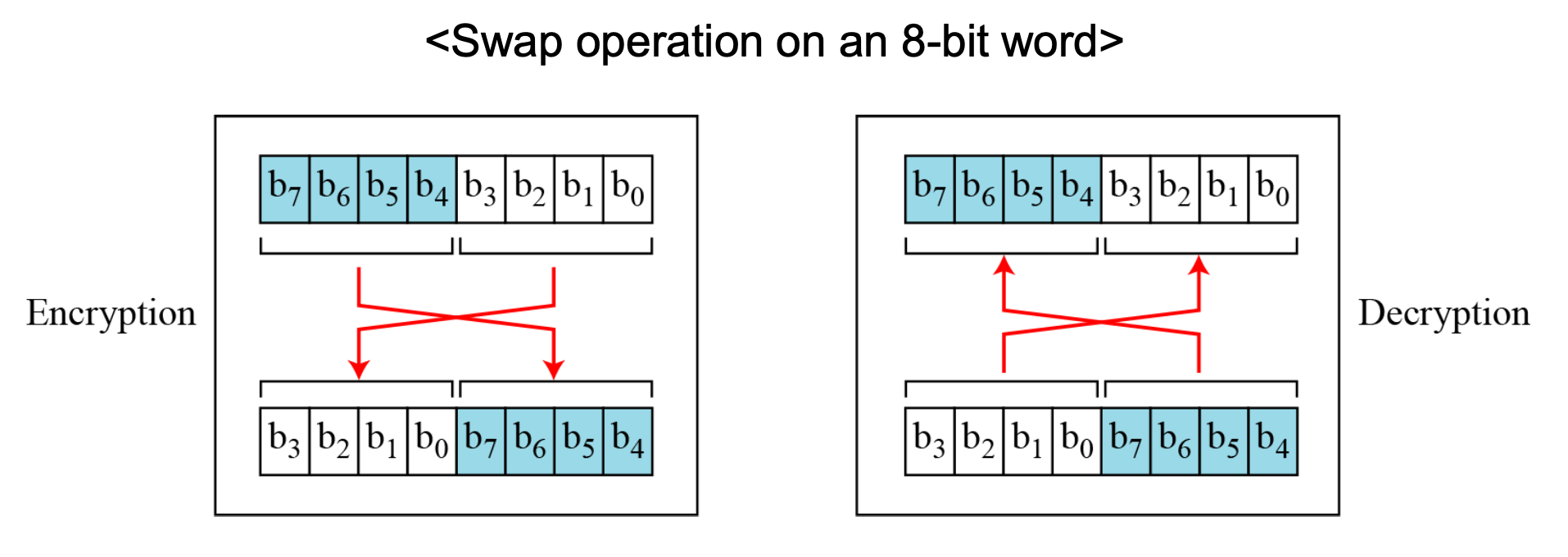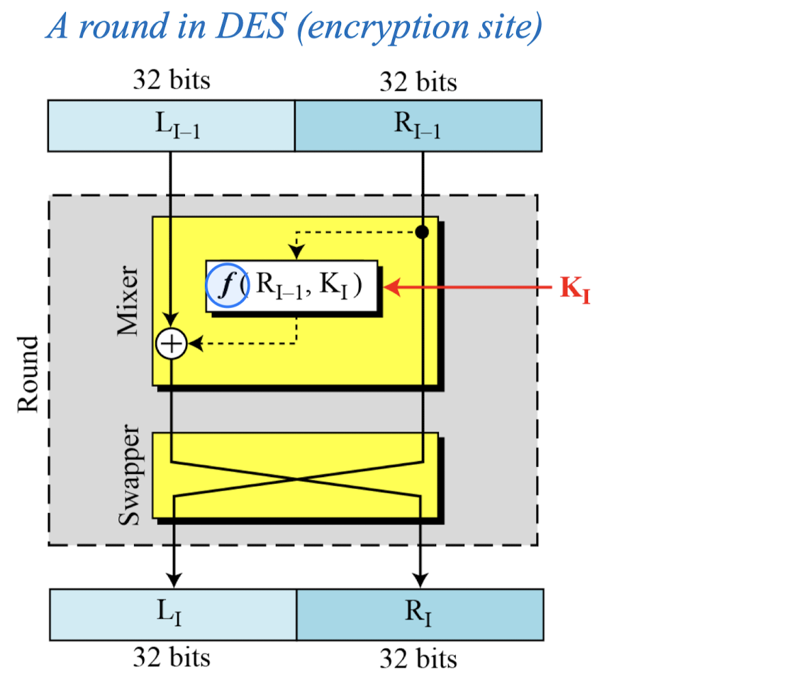 - A Feistel cipher can have three types of components: self-invertible(XOR), invertible, and non-invertible.