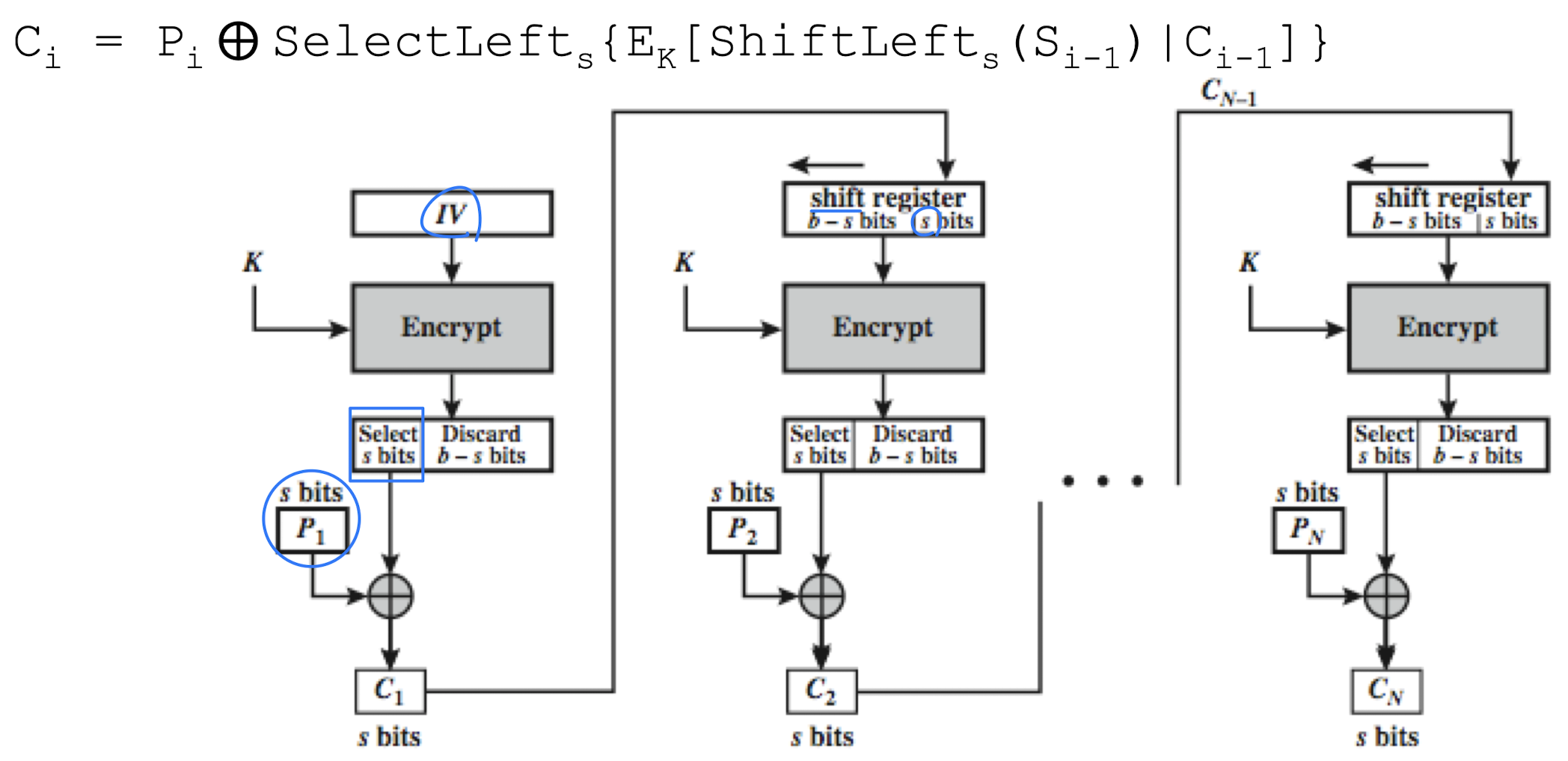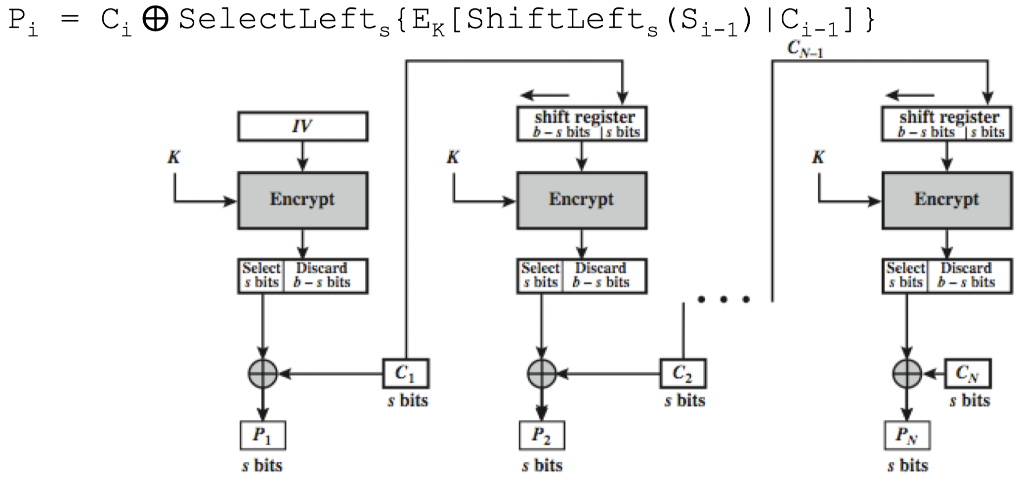 - Encryption in CFB-s Mode