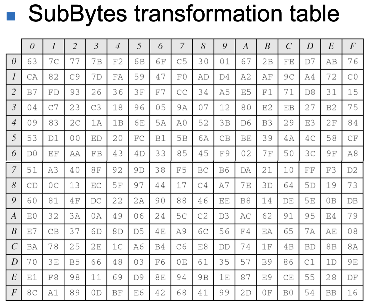 - S-box (substitution box) can be thought of as a miniature substitution cipher.