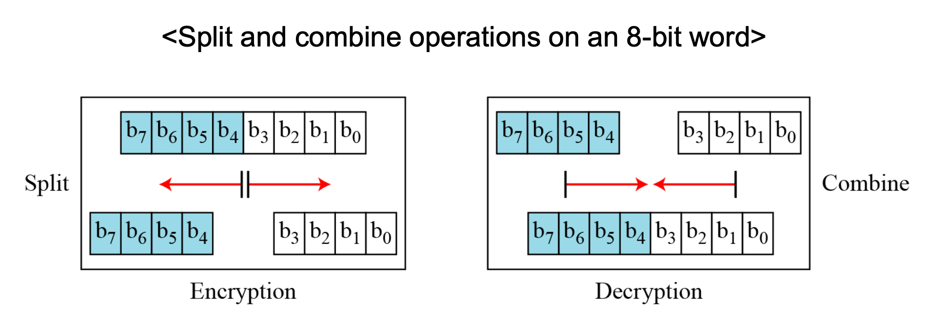 - Two other operations found in some block ciphers are split and combine.
