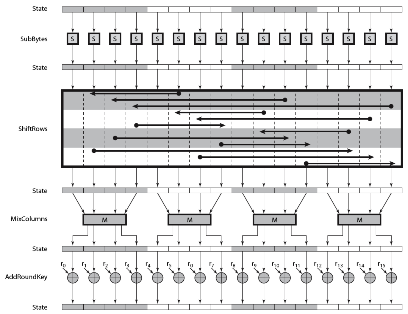 - AES can be implemented in software, hardware, and firmware.