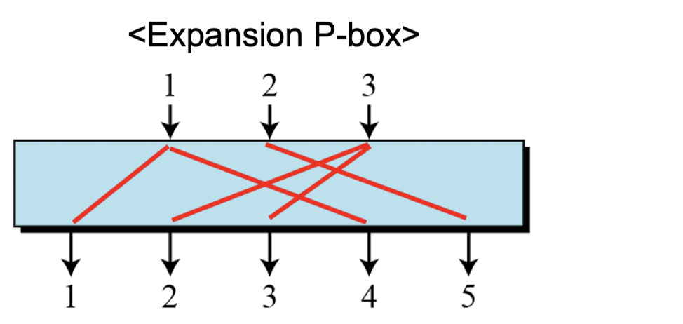 - Expansion P-box is a P-box with n inputs and m outputs where m > n