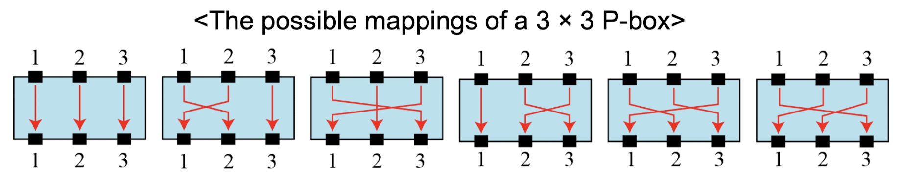 - Straight P-box has n! possible mappings