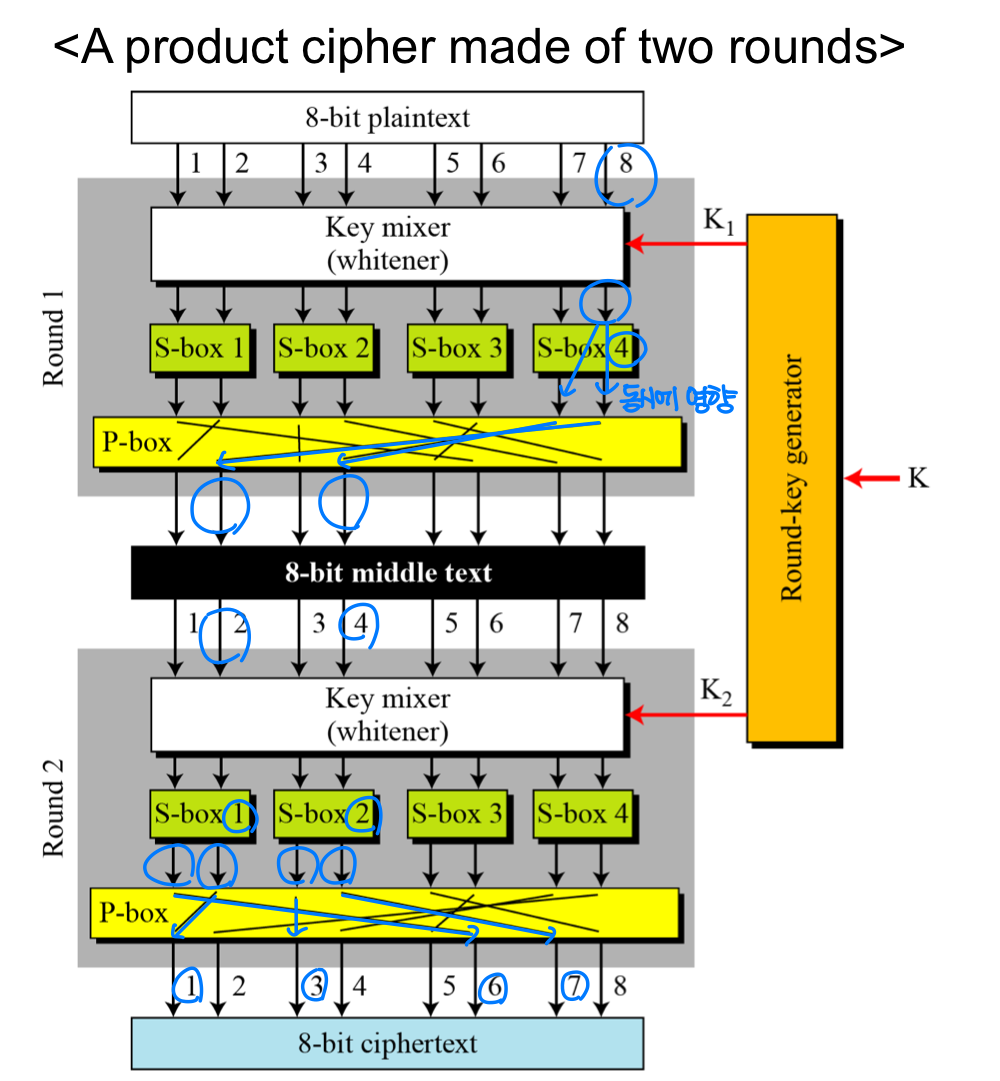 - Product cipher have two important properties – diffusion(확산) and confusion(혼동, 혼란)