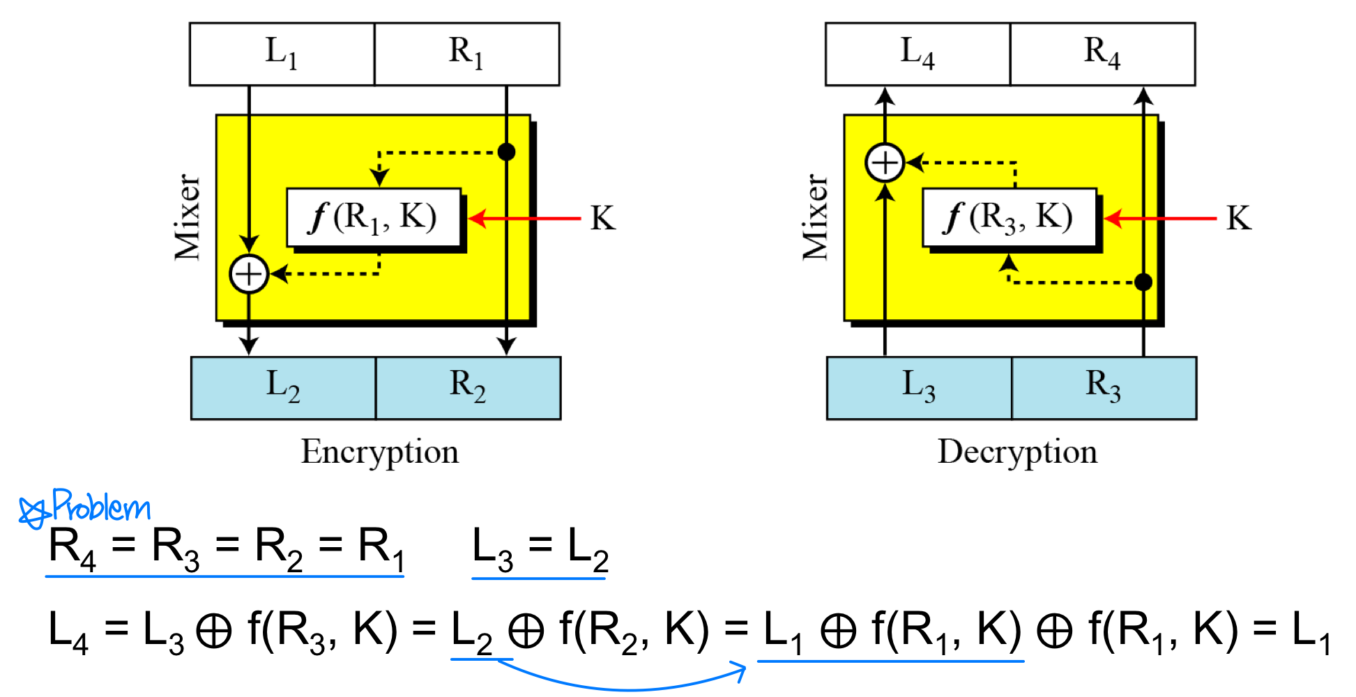- The question is how the encryption and decryption algorithms are inverse of each other if each has a non-invertible unit. Feistel shows that they can be canceled out
