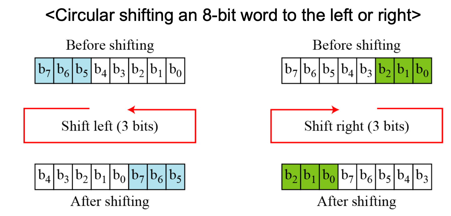 - Another component found in some modern block ciphers is the circular shift operation.