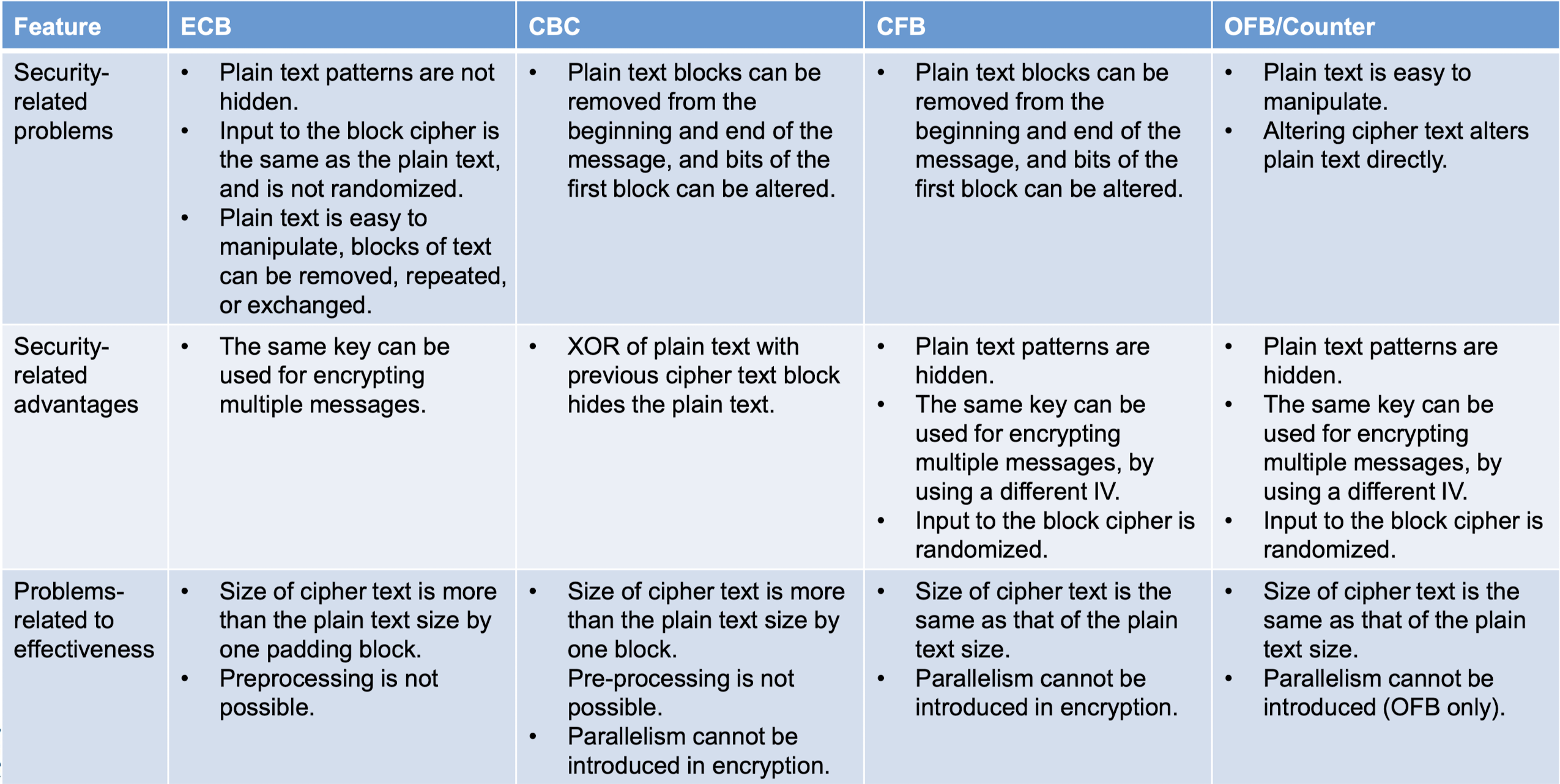- Message repetitions may show in ciphertext
