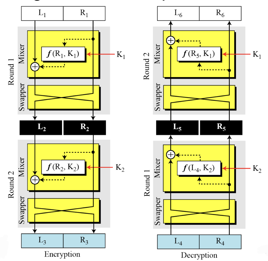 - Final design of a Feistel cipher with two rounds