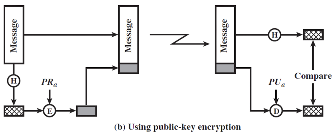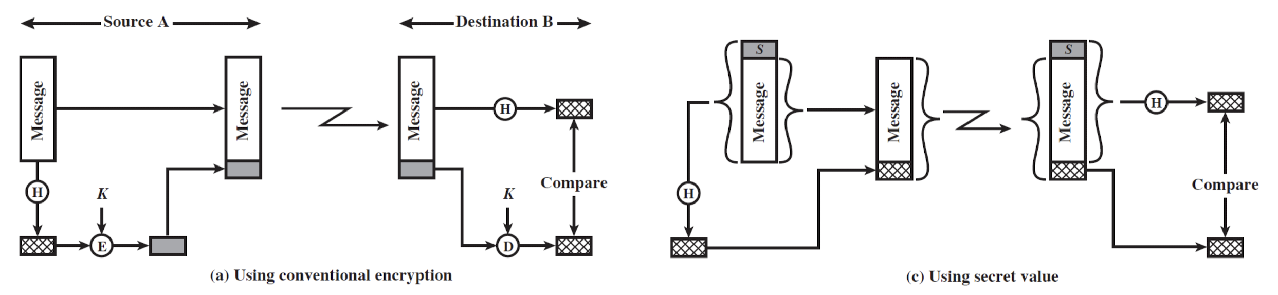 - Symmetric encryption alone is not a suitable tool for data authentication.