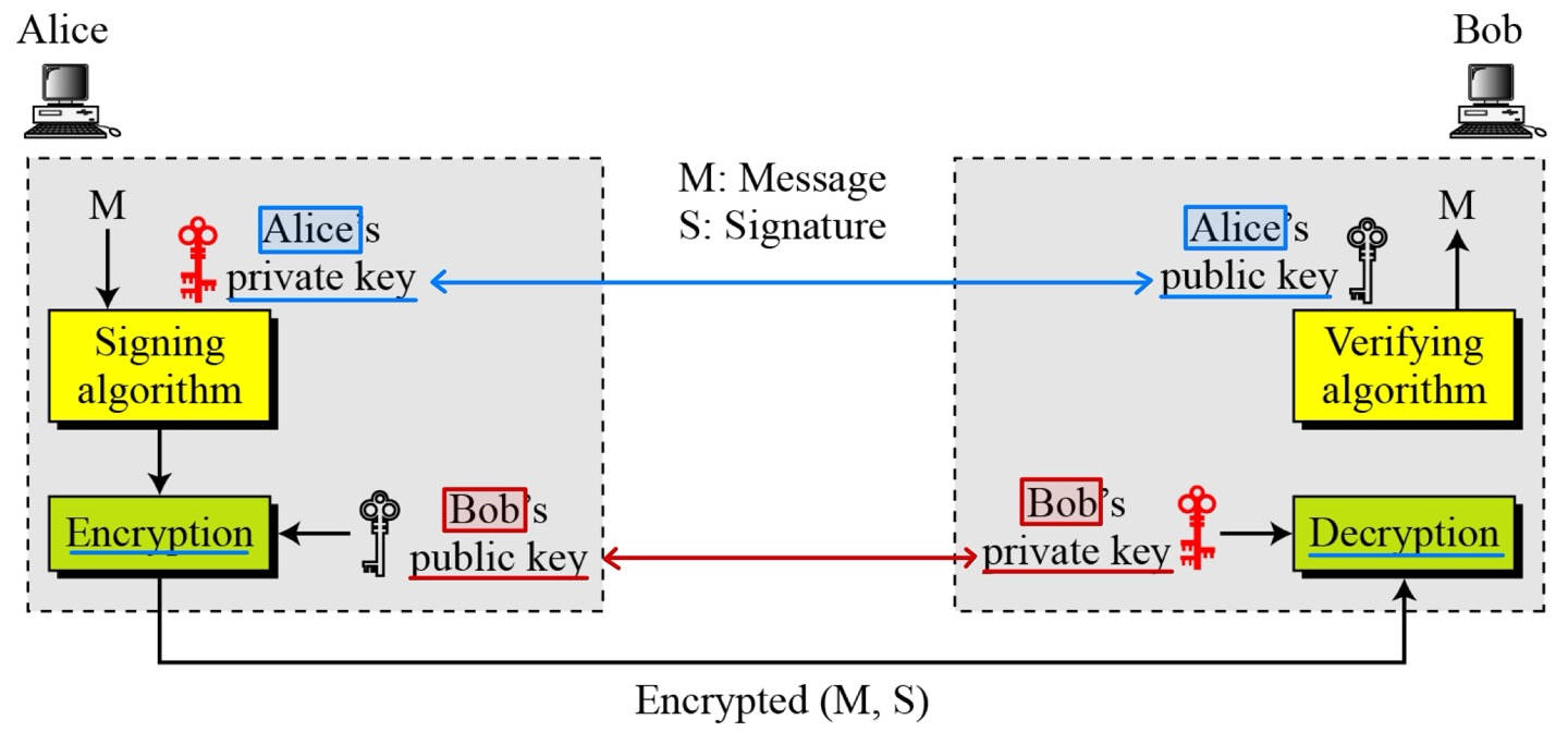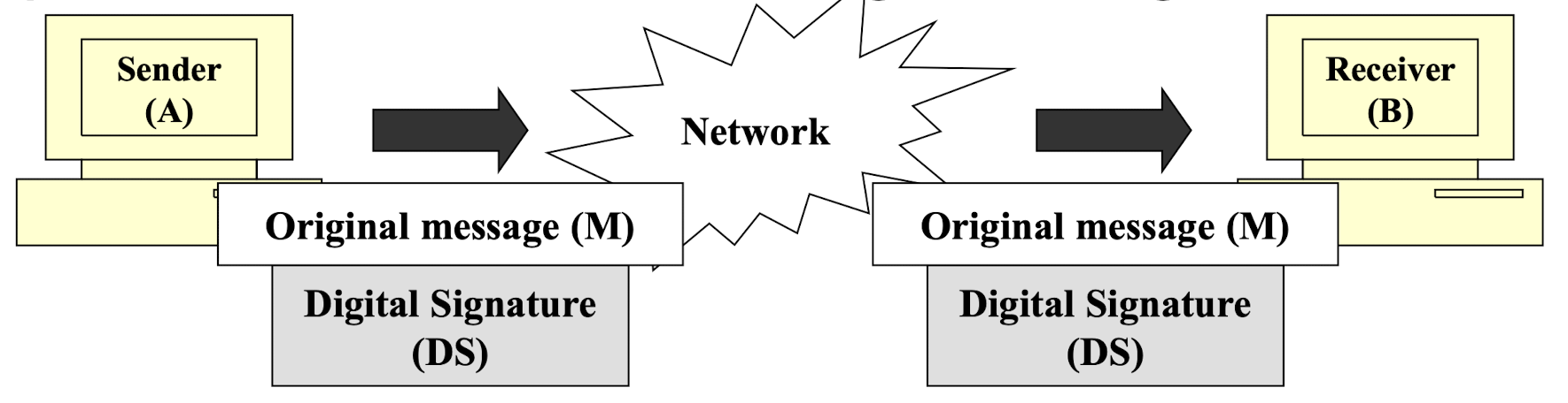 - A digital signature can directly provide validation of identity of originator, message integrity, and non-repudiation; for message confidentiality we still need encryption/ decryption.