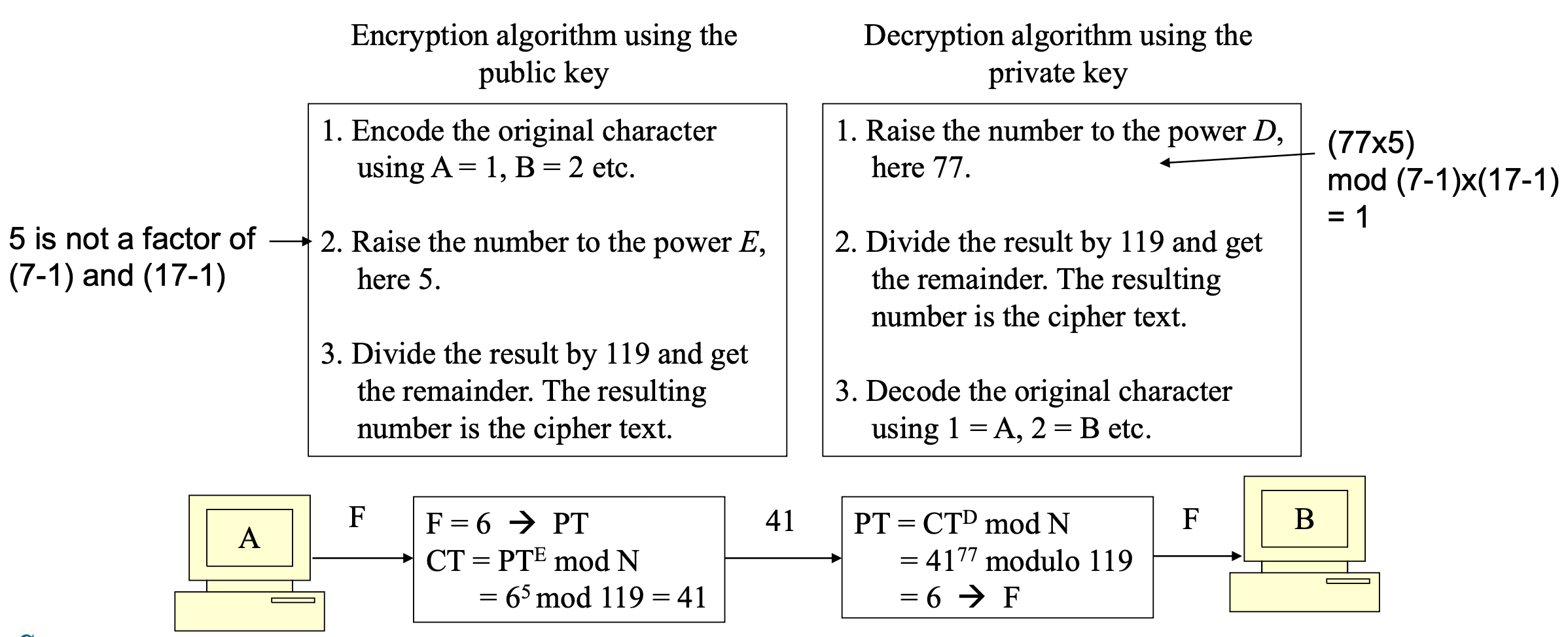 - Suppose P=7 and Q=17 → N=PxQ=119