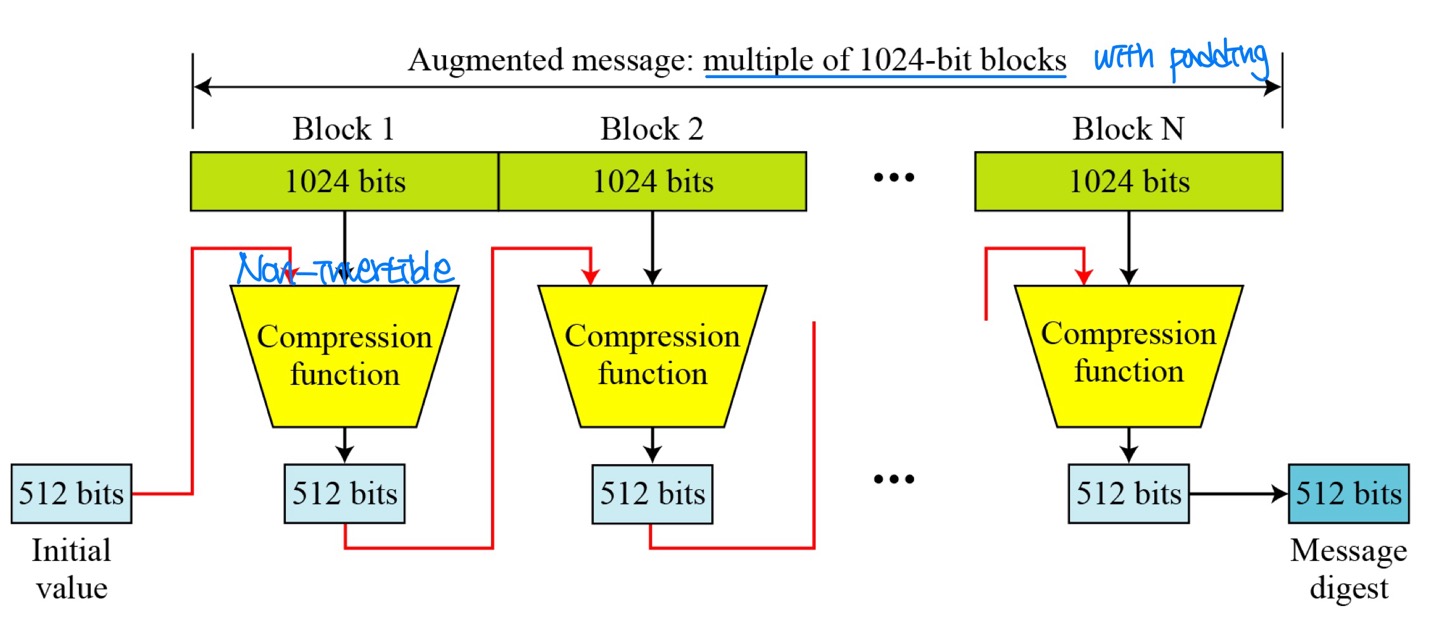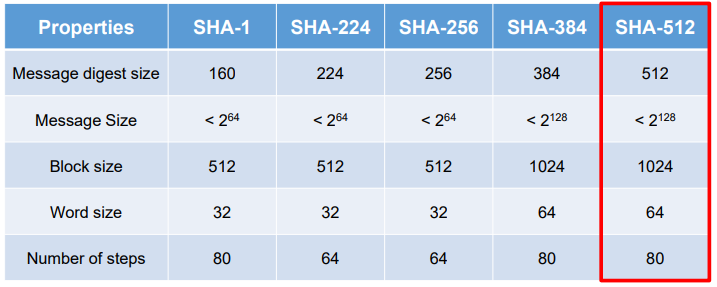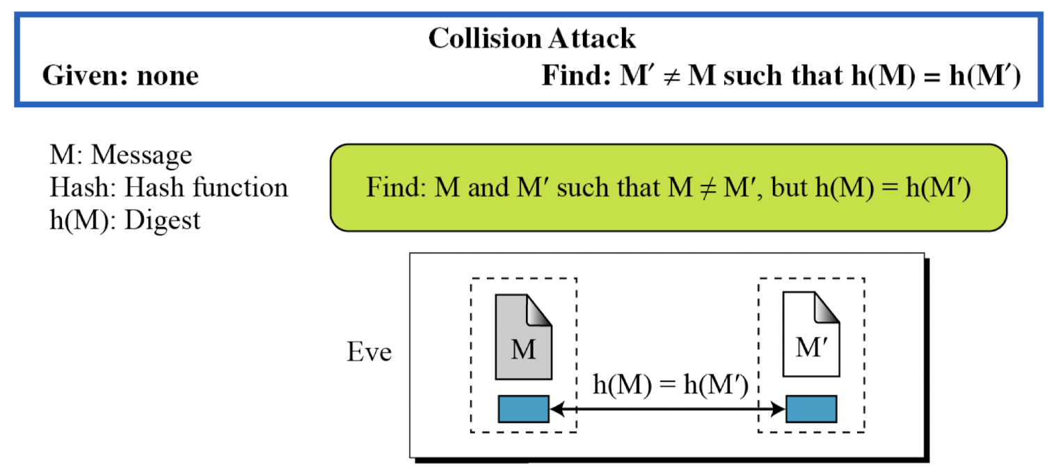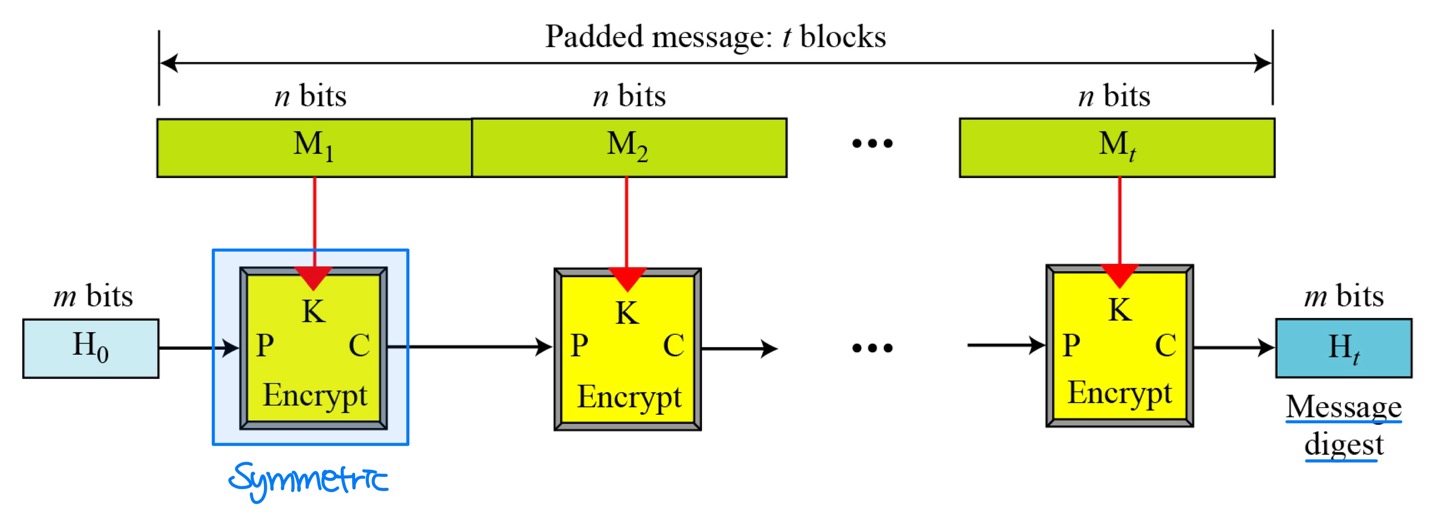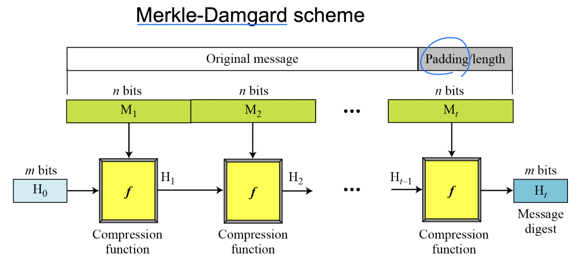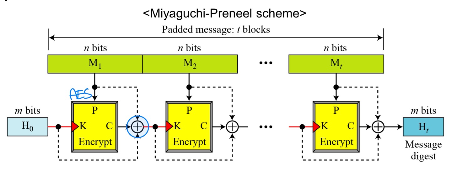 - eg. MD5, SHA-1, RIPEMD-160, Whirlpool