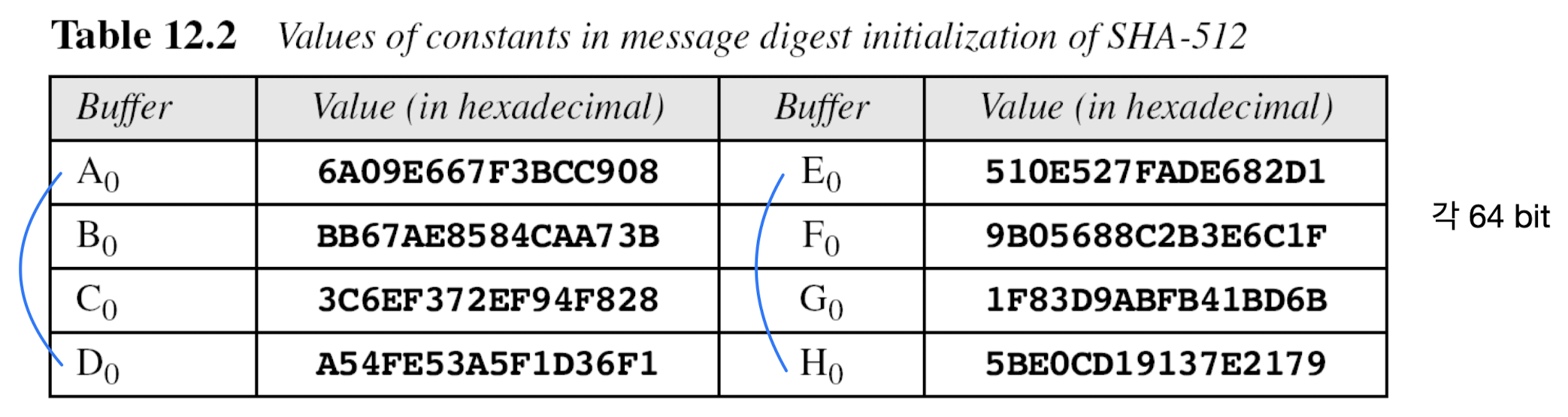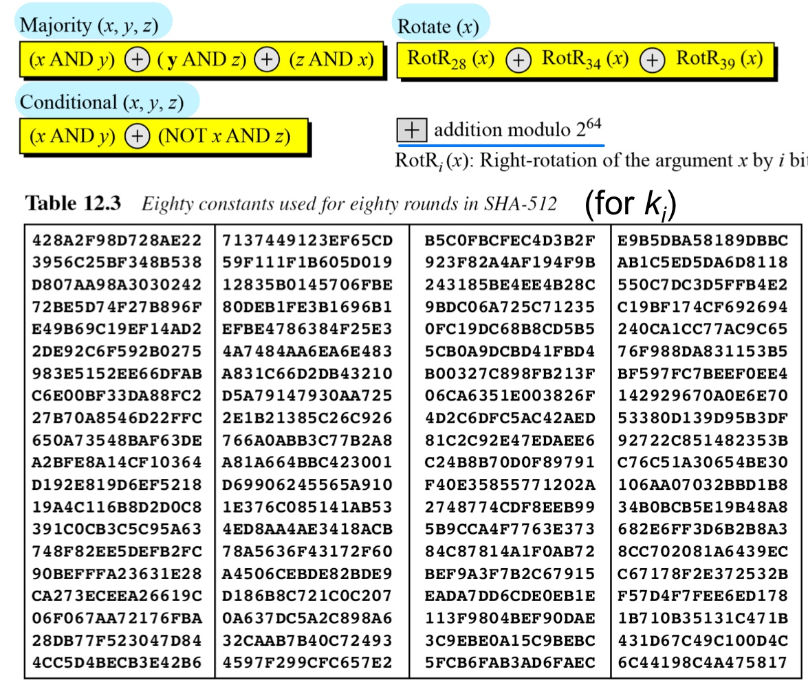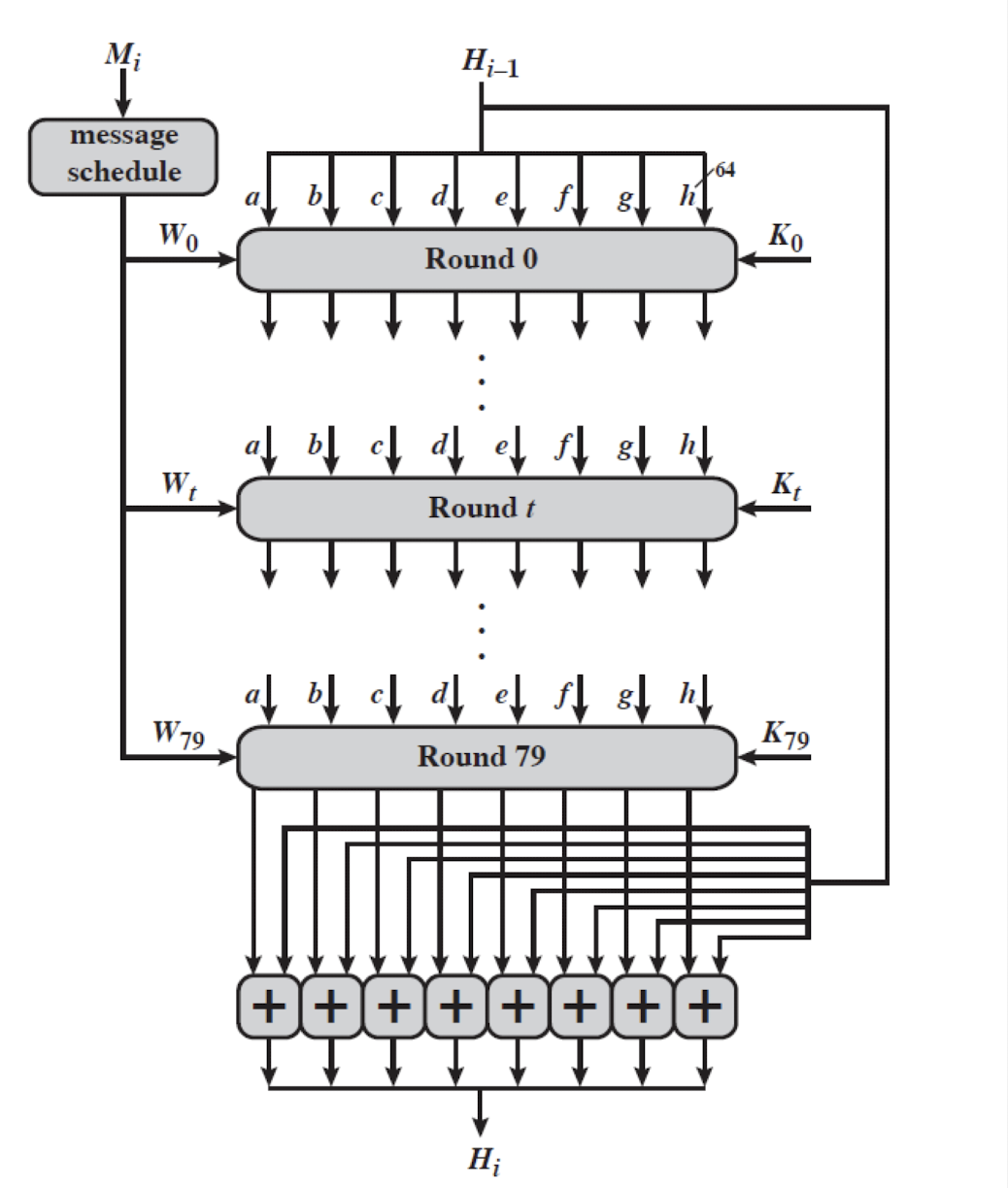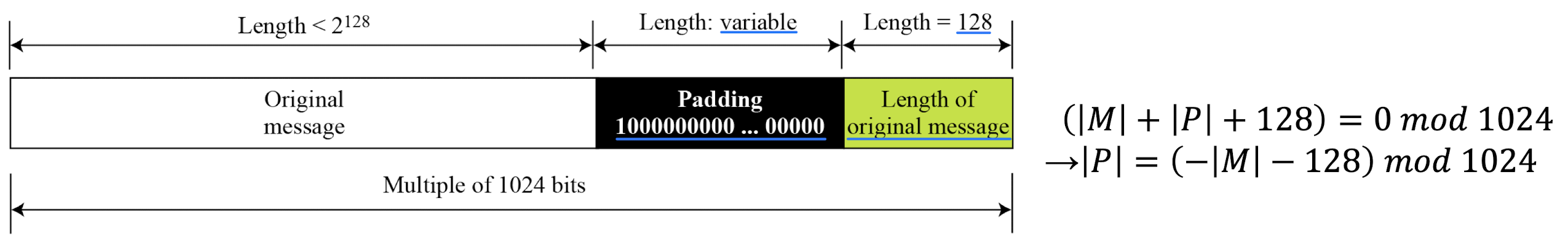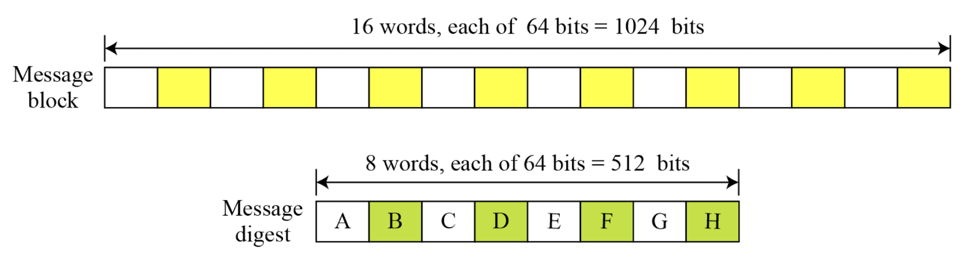 - eg. MD5, SHA-1, RIPEMD-160, Whirlpool