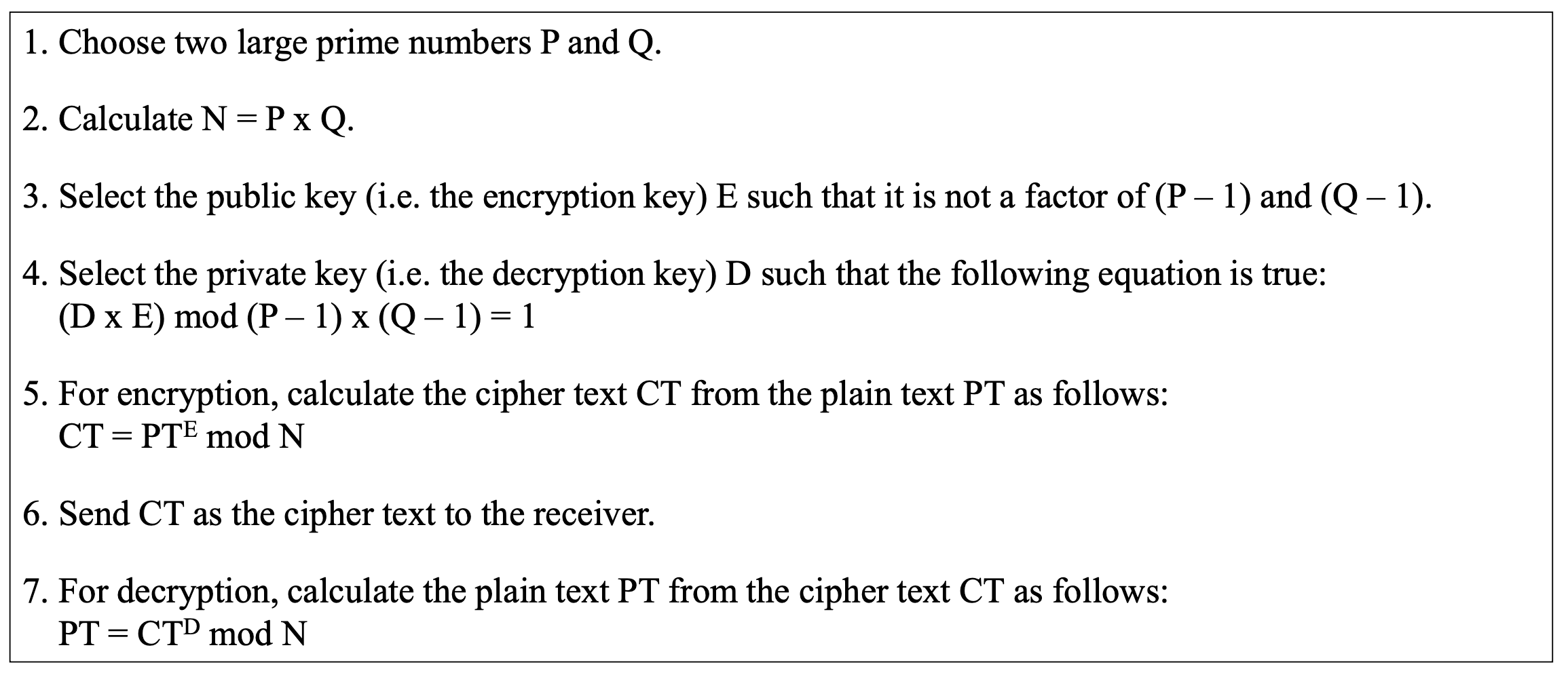 (D x E) mod (P – 1) x (Q – 1) = 1