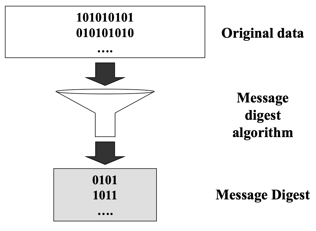 - The digest created by a cryptographic hash function is normally called a modification detection code (MDC).