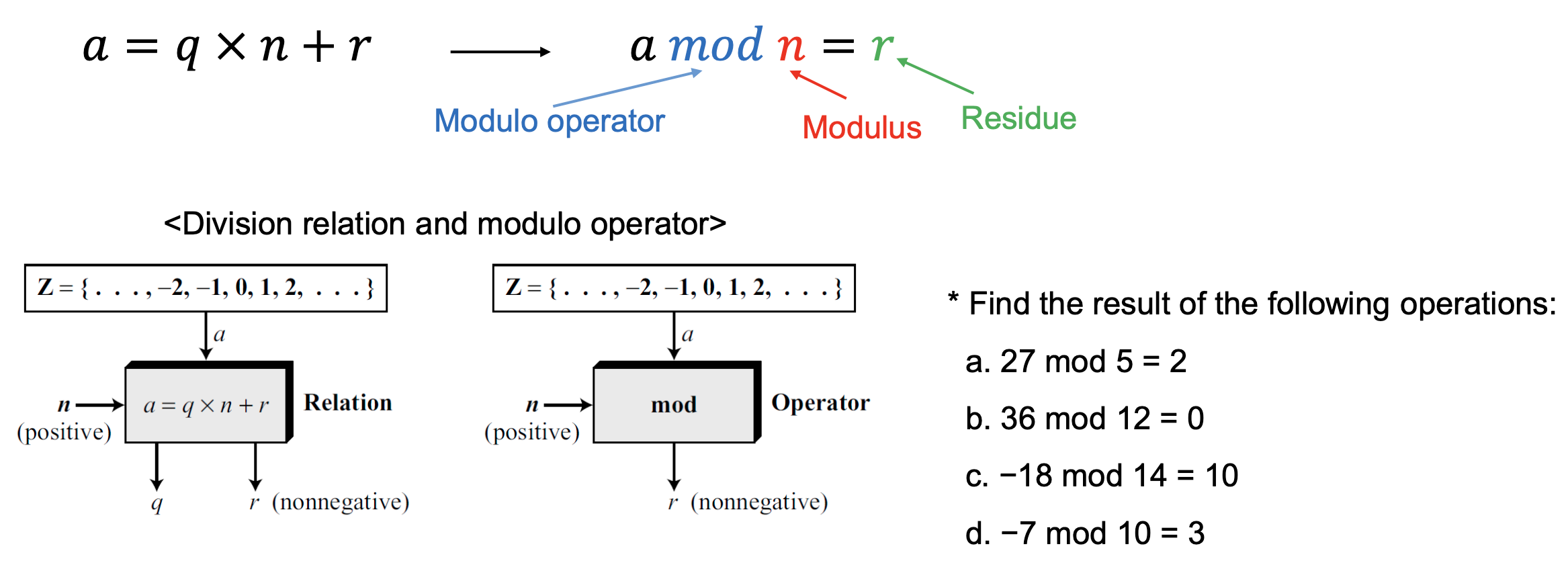 - In modular arithmetic, we are interested in only one of the outputs, the remainder 𝑟