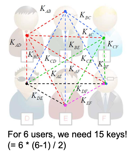 - Since the secret key of symmetric key cryptography must be shared by both sender and receiver.