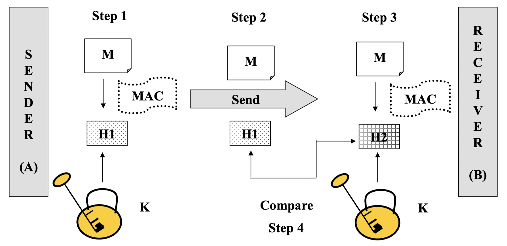 - When symmetric key or secret value between Alice and Bob is used in message authentication,