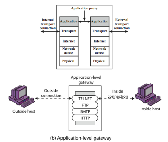 - Application-level gateway tend to be more secure than packet filters since we simply detect whether a user is allowed to work with a TCP/IP application or not (not examine every packets)