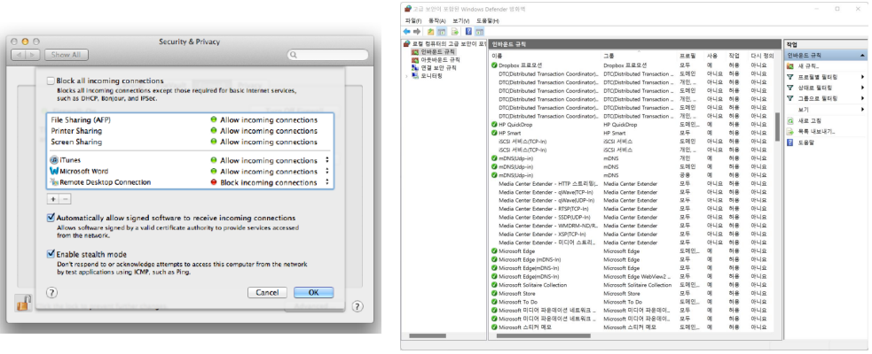 → OS 제공 개인 방화벽