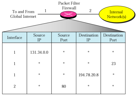 - Example of packet filter rules: