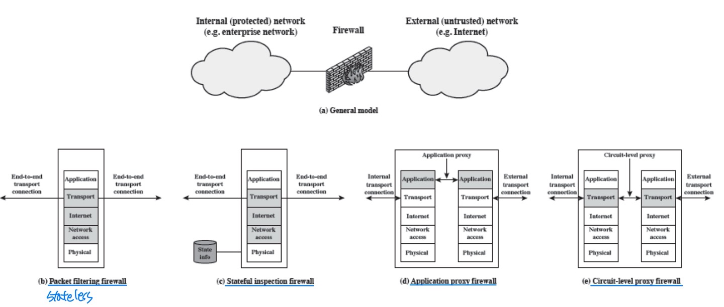 - Stateless packet filtering → packet by packet