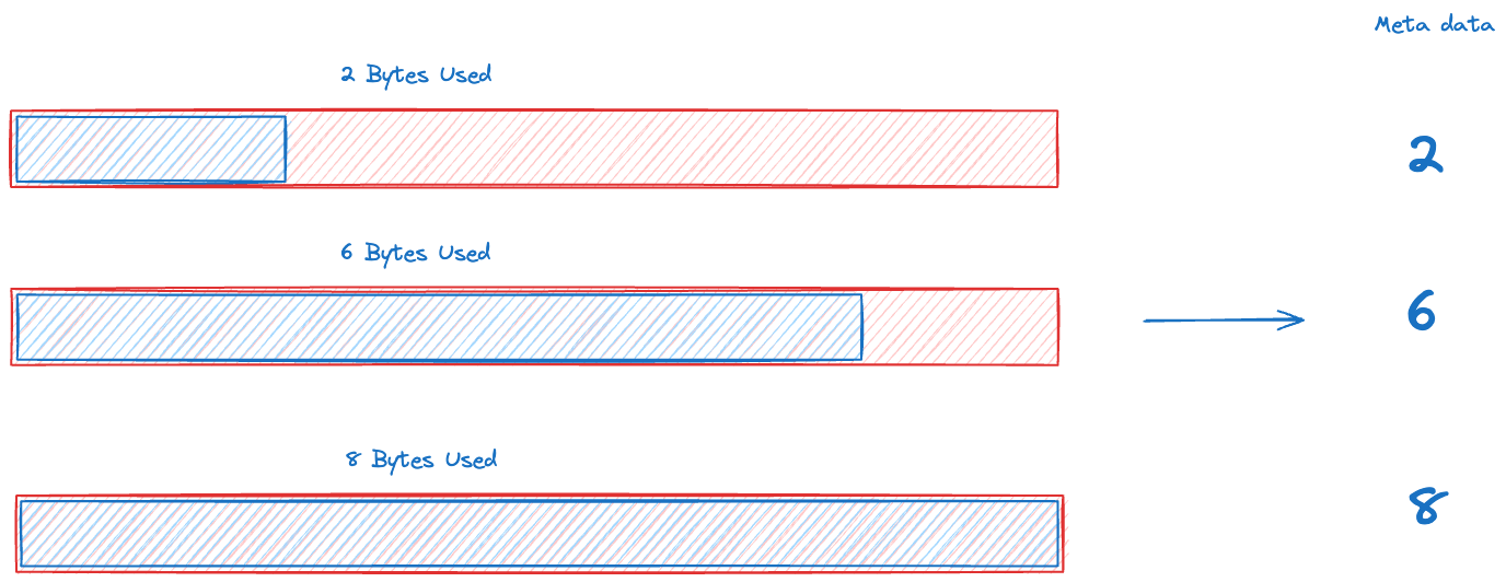 예를 들어, 내가 1234Bytes의 메모리를 Write한 뒤, 같은 주소에서 1235 Bytes의 메모리를 Read하려고 한다. 앞서 말했듯이, 모든 memory access는 8 Bytes 정렬이 되어있기 때문에 에러를 발생시키지 않을 수 있다. 하지만 만약 우리가 1234 Bytes을 Write했다는 것을 어딘가에 적어놓았다면 1235 Bytes을 Read하려고 할 때 out-of-bounds 에러가 발생했다는 것을 알아낼 수 있다.