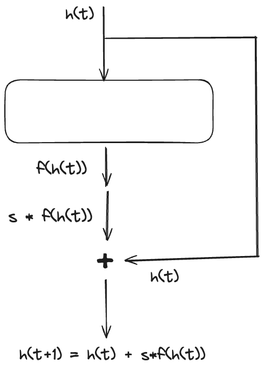 h(t+s)=h(t)+s⋅f(h(t))h(t+2s)=h(t)+s⋅f(h(t+s))...h(T)=h(T−s)+s⋅f(h(T−s))