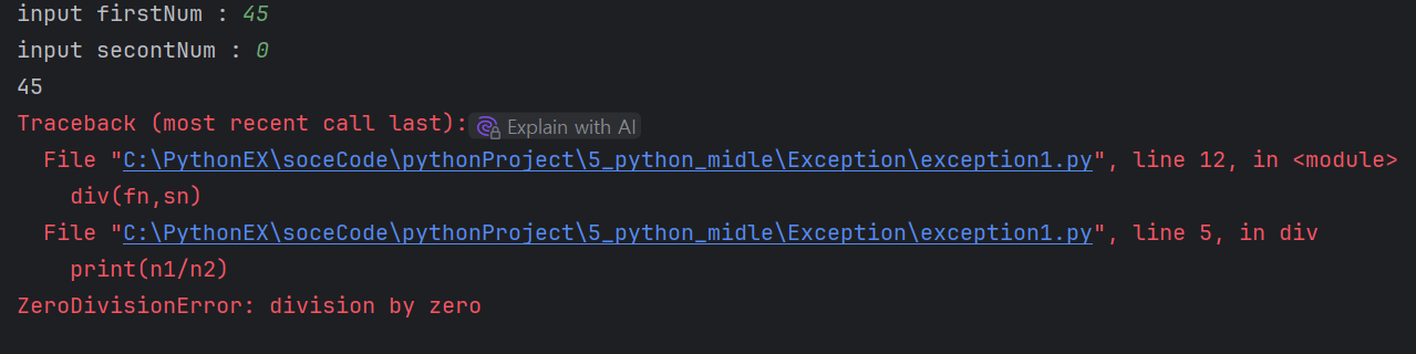 - 해당 에러를 예외처리하기 위해서 try ~ except 을 사용한다.