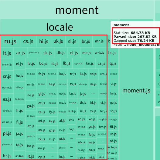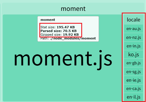 moment는 javascript에서 많이 사용되는 시간 관련 라이브러리이고 다국어를 지원한다. 기본 설정으로는 모든 다국어 파일을 번들에 포함시킨다.