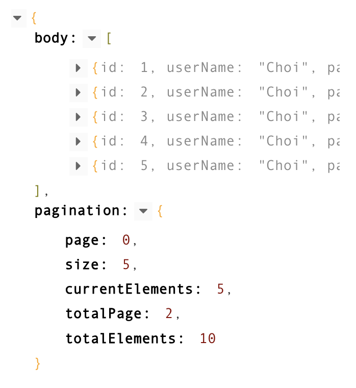 Api<List<PostEntity>>, meaning body is a list of PostEntity objects (the actual posts) and pagination is the metadata about pagination (current page, total pages, etc.)postRepository.findAll(pageable) returns a Page<PostEntity> object, list has access to the methods from the Page<T> interface in Spring Data JPA. GET request http://localhost:8080/api/post/all?page=0&size=5 where we are fetching page number 0 with page size 5, we get the following: