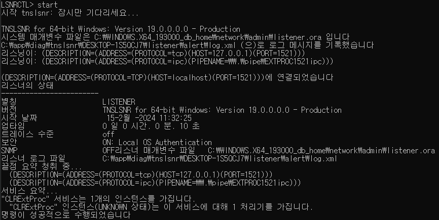 DOS : lsnrctl.exe 사용.( 관리자 권한으로 실행 )