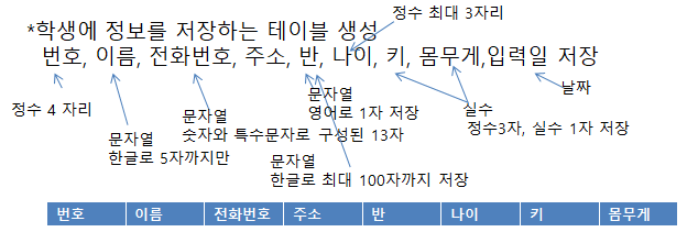 create table 테이블명(