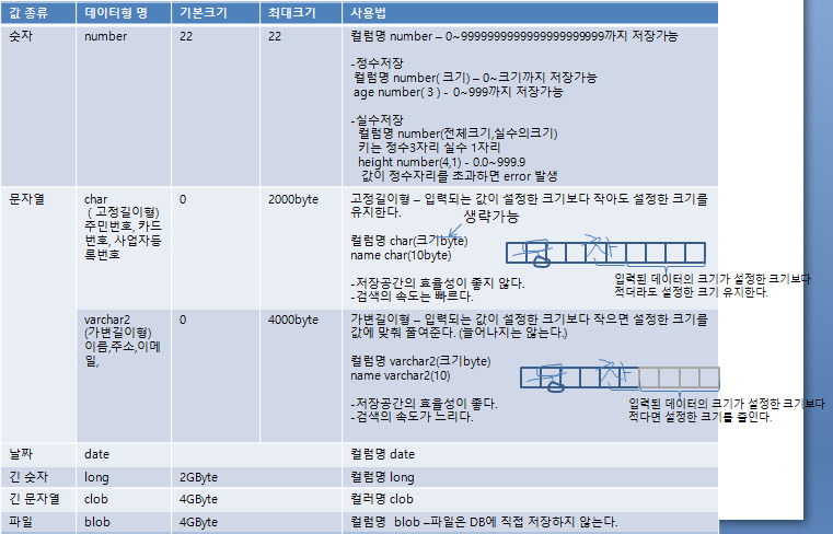 설치, 가동법, 계정생성, create, 데이터형, insert, select, update, delete, truncate, drop, select 함수, subquery, constraint, alter, union, join, sequence, view, index, 계정생성, 권한부여, 백업, 복원
