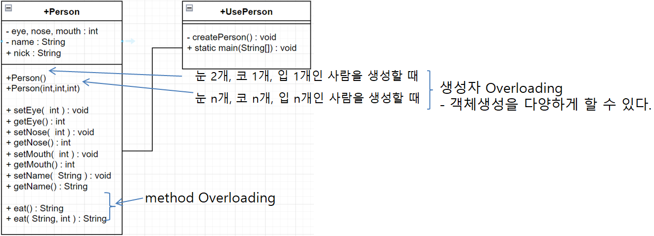 생성자는 Overload(이름은 같지만 매개변수가 다른 거)가 된다.(객체 생성을 다양하게 할 수 있다.)