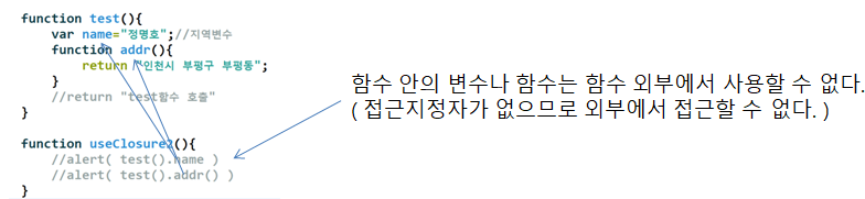 함수 안의 변수나 함수를 외부에서 사용하기 위해 가장 마지막줄에 closure를 만들고 변수나 함수를 연결시켜 반환한다.