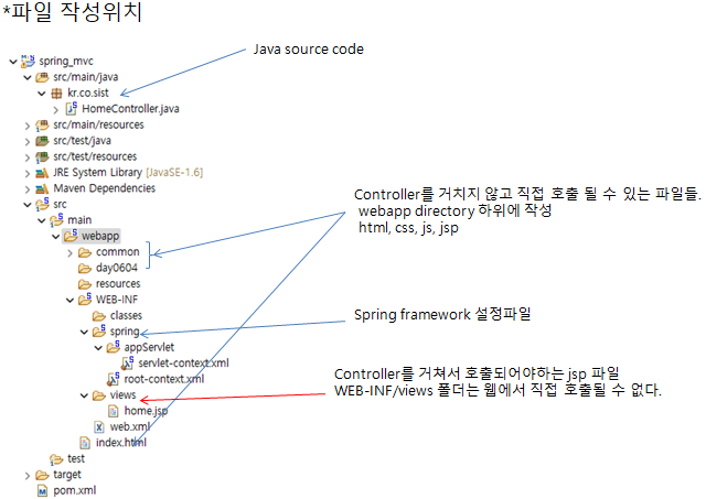 -views폴더의 하위폴더를 생성하고 JSP를 생성하면 Controller method에서는 "하위폴더명/jsp명" 으로 반환해야한다.