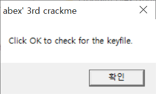 abex' crack me #3의 exe 파일을 실행시킨다.