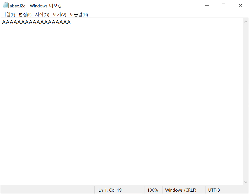 abex.l2c 라는 파일을 생성하여 18byte만큼 입력해준다.