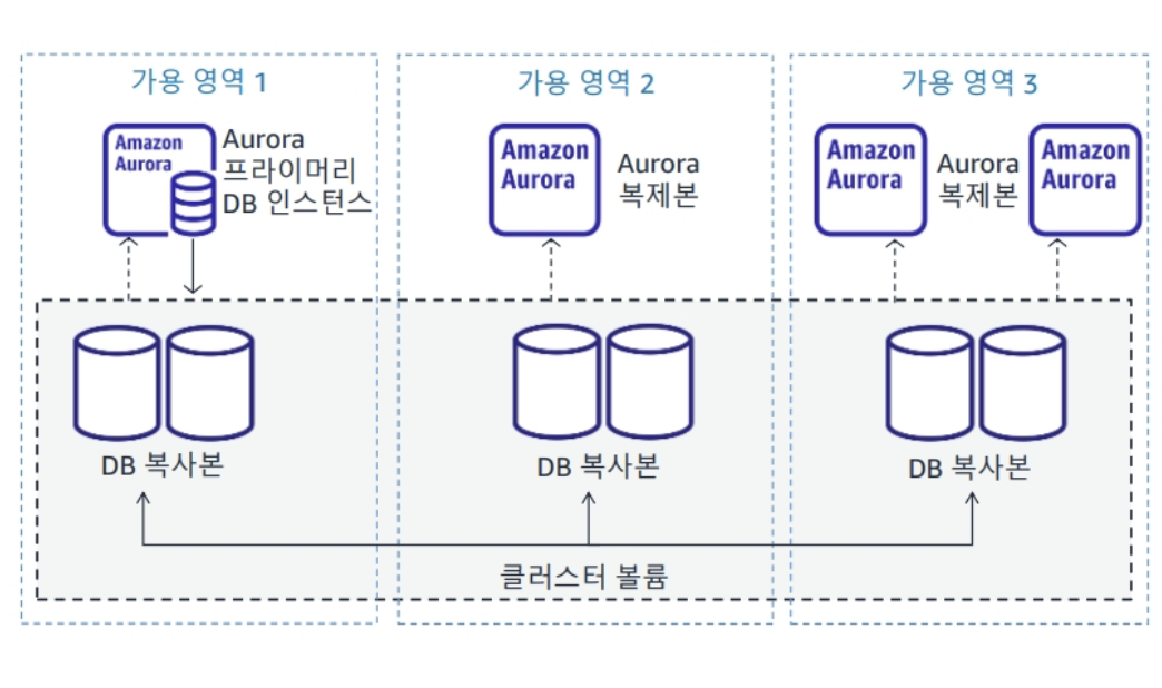 Aurora DB는 기본적으로 클러스터 단위로 구성된다. 하나 이상의 DB 인스턴스와 해당 DB 인스턴스에 대한 데이터를 관리하는 클러스터 볼륨으로 구성된다.