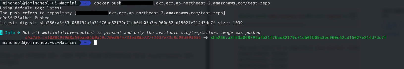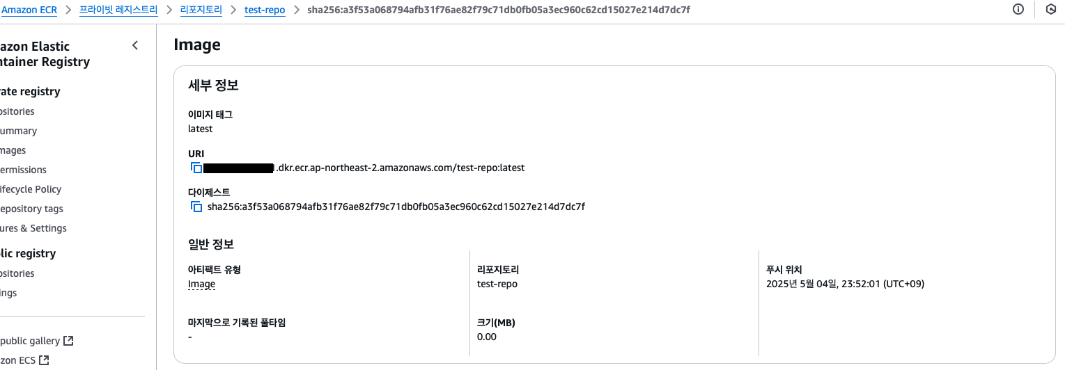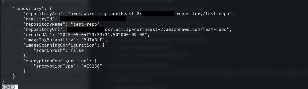 aws ecr create-repository --repository-name test-repo --region ap-northeast-2