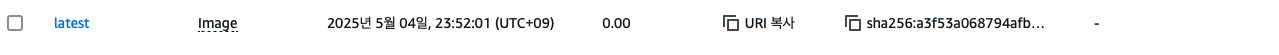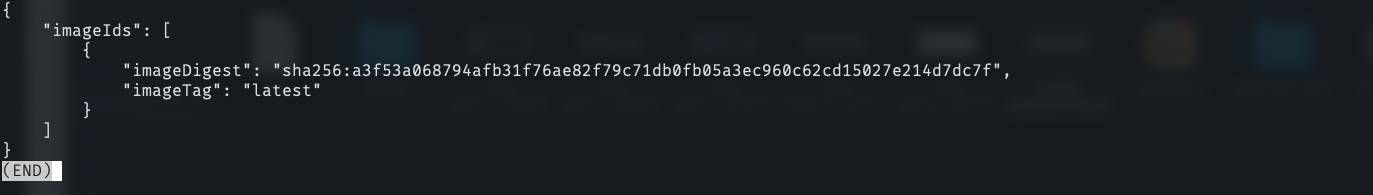 그럼 json 형태로 이러한 결과를 보여주는데 이때 repositoryurl만 복사해준다. 이러한 url 형식이 컨테이너의 태그이름이 될것이다.
