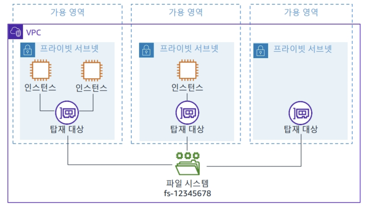 - NFS를 지원하고 EC2부터 시작해서 ECS, EKS, Lambda, Fargate까지 대부분의 서비스를 지원한다.