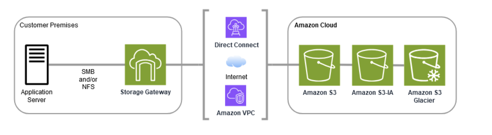 AWS Storage Gateway는 온프레미스 데이터와 AWS의 스토리지 인프라간에 통합하여 온프레미스에서 클라우드의 스토리지를 안전하게 사용할 수 있다. 지연시간이 짧고 비용 효율적인 확장 가능 보안을 유지 가능하다.