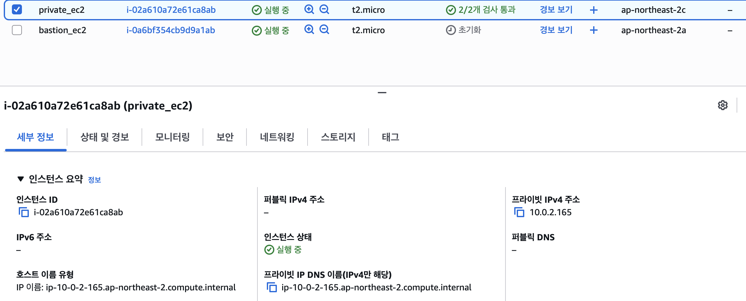 그후에 바로 내부IP를 가지고 private_ec2 인스턴스에 접속