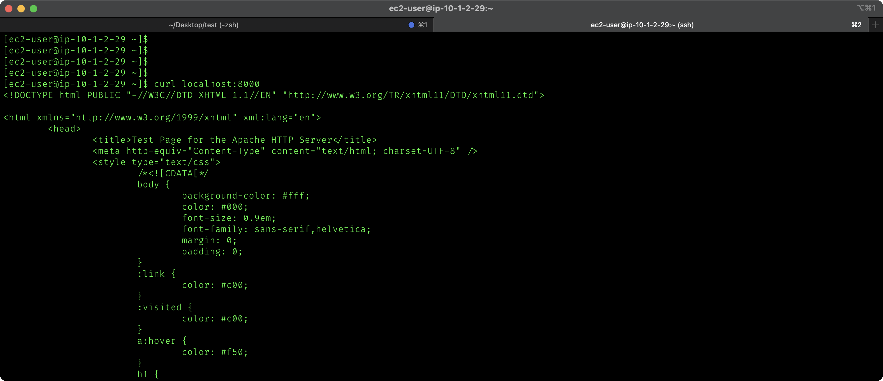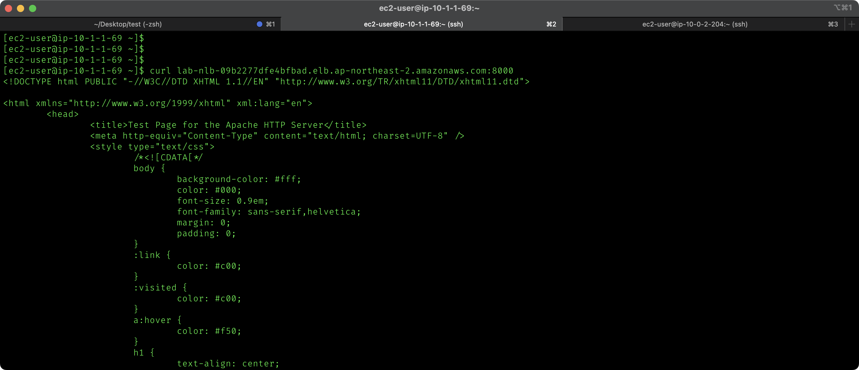 등록을 완료하고 provider의 bastion ec2에서 웹서버를 호출하면 잘 작동하는것을 볼 수 있다.