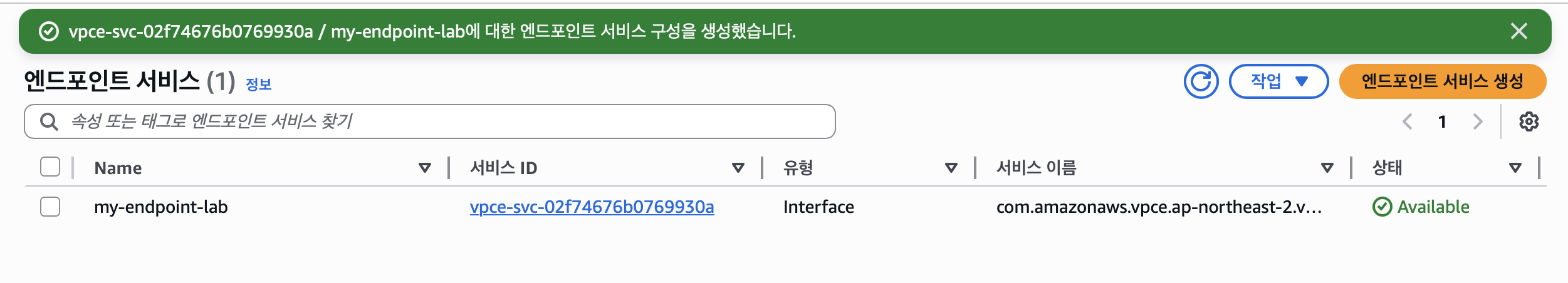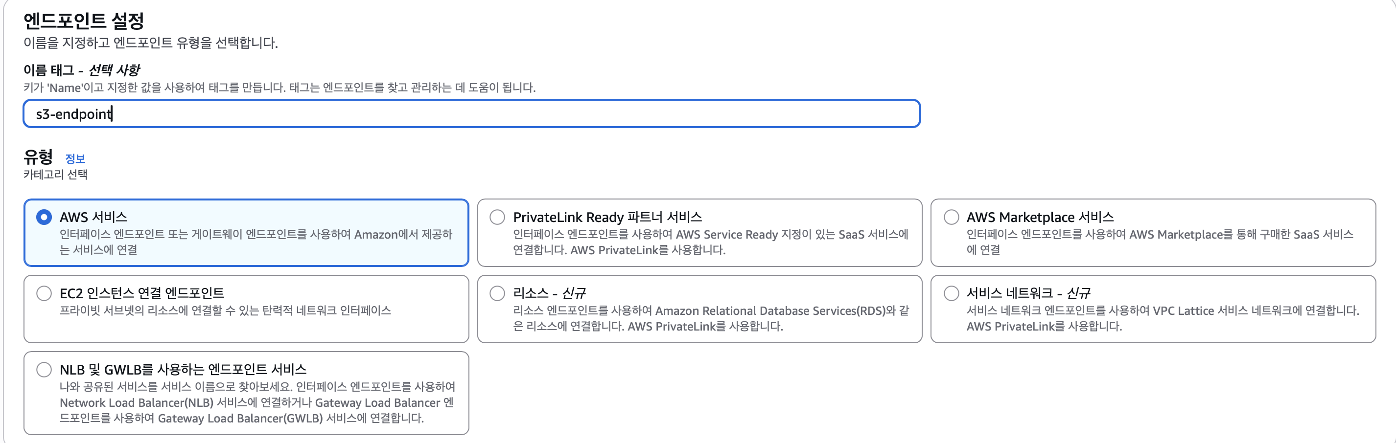 이때 중요한점은 엔드포인트 서비스의 서비스 이름을 꼭 미리 복사해두자..(서비스 이름 찾느라 10분을 날려먹었다...)