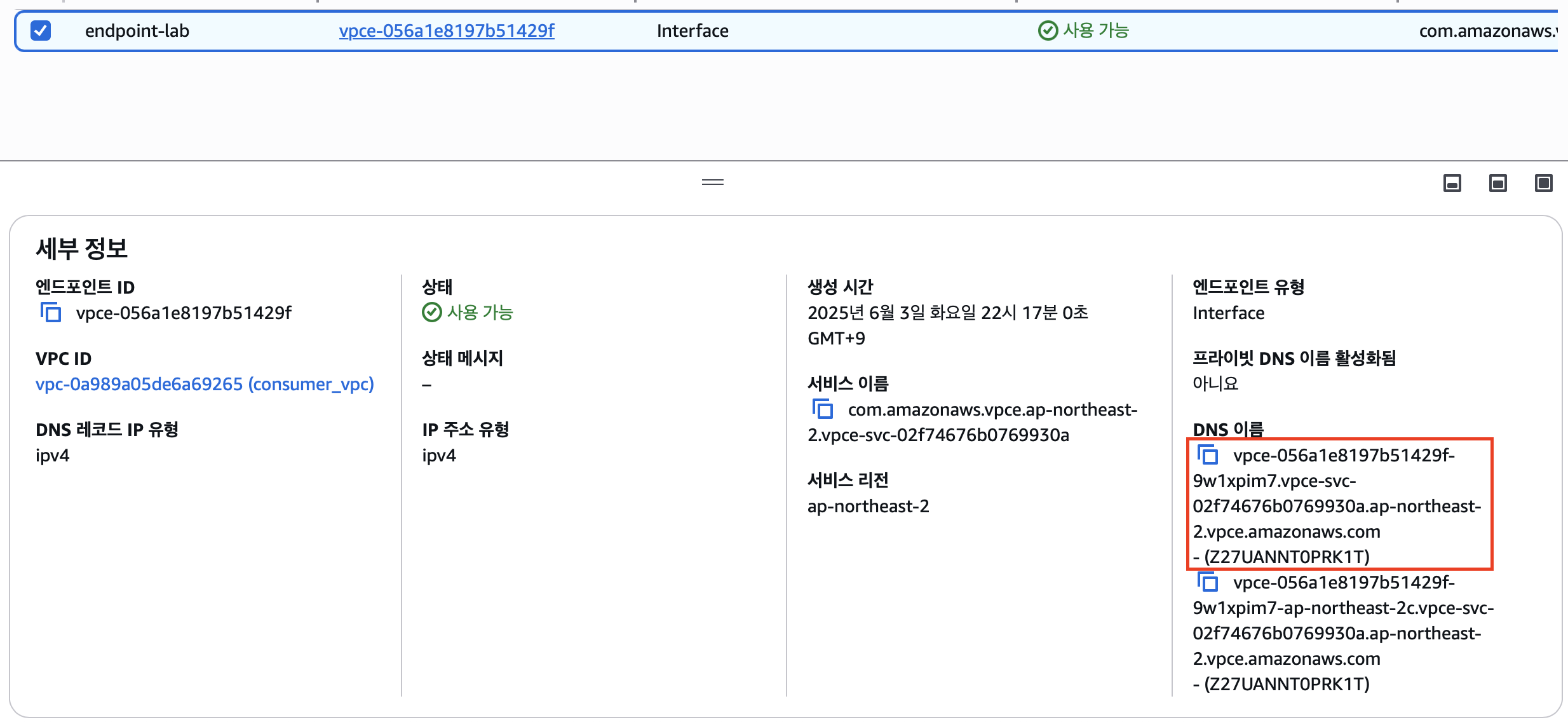 그럼 이제 엔드포인트 서비스가 생성된다. 엔드포인트 서비스는 provider에 상주하며 provider에 있는 서비스를 외부 vpc에 제공해주는 그런 역할을한다.